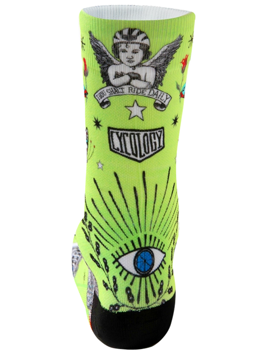 CYCOLOGY GREEN REFLECTIVE LOGO CYCLING SOCKS
