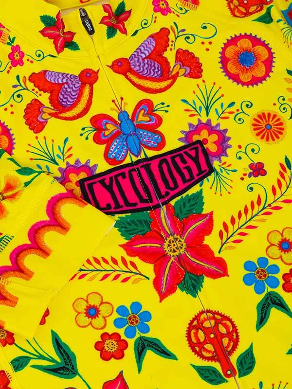 Inspired by Frida Kahlo & the vibrant colours of Mexican folk art which perfectly illustrates the sensory delights of cycling: sunshine, vivid colours, beautiful bold flora and fauna.